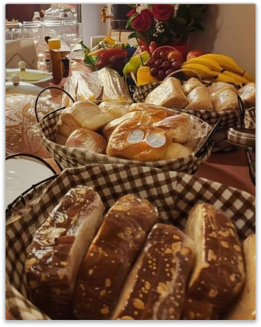 - Bolos: Mais de 15 sabores, incluindo Arroz, Banana com Nutella, Cenoura com Chocolate, Choco Ninho, Fubá com Goiabada, Laranja, Maçã com Canela e muito mais.